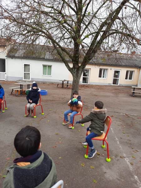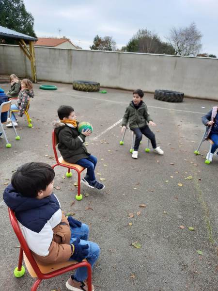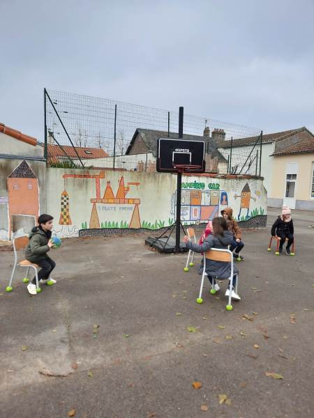 -sensibilisation au handicap au moment du Téléthon : écrire sans main, jeux de ballons sans marcher, …