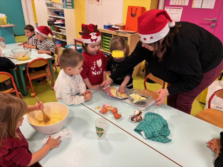 En décembre avec les TPS/PS !Par Stéphanie Guibreteau / 2 janvier 2026 Nous allons voir la crèche installée dans l'église. En motricité, nous essayons le parachute . Petit spectacle de marionnettes à la médiathèque. Nous réalisons des gâteaux pour le marché de Noël. Quelques activités Les anniversaires de décembre Joyeux Noël !