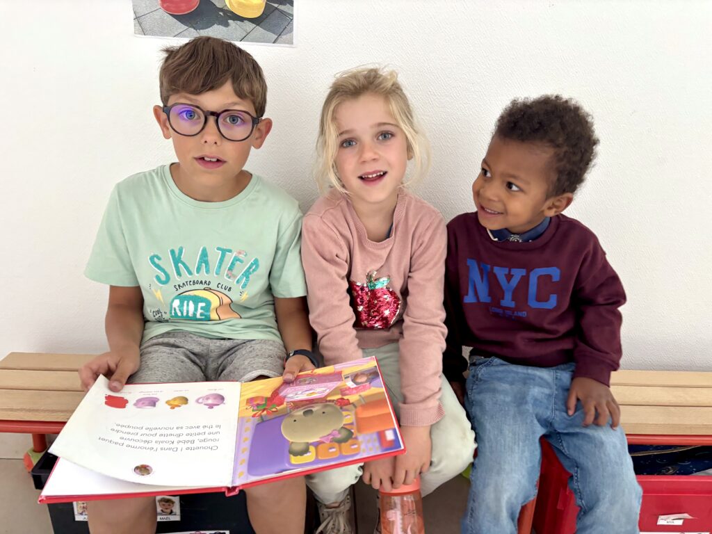 Cette année, nos 3 classes se retrouveront régulièrement pour des activités diverses. En septembre, chaque mardi après-midi, les grands sont venus nous lire des histoires.