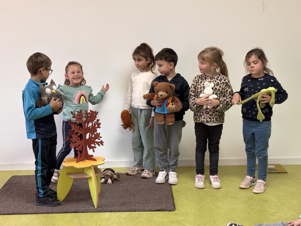 En octobre, les PS ont présenté un petit spectacle relatant l’histoire de CHOUPETTE ( la mascotte de leur classe) aux enfants de GSCP. L’histoire leur a tellement plu, qu’ils ont souhaité s’entrainer durant une semaine avec les personnages. Et à leur tour, ils nous ont raconté l’histoire. C’était super !